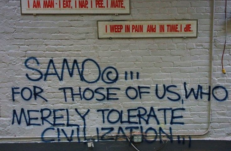 Notre mouvement se revendique au même titre que celui initié par Jean-Michel Basquiat il de ça 50 ans. SAMO en référence à "Same Old Shit", un courant rendant hommage aux reliques culturelles d'antan évoquant la rage de créer des artistes en déficit moyen, prônant indépendance et diversité culturelle. Nous oeuvrons pour donner l'opportunité à tout un chacun d'expérimenter, pourvu qu'il soit en état d'effervescence créative.